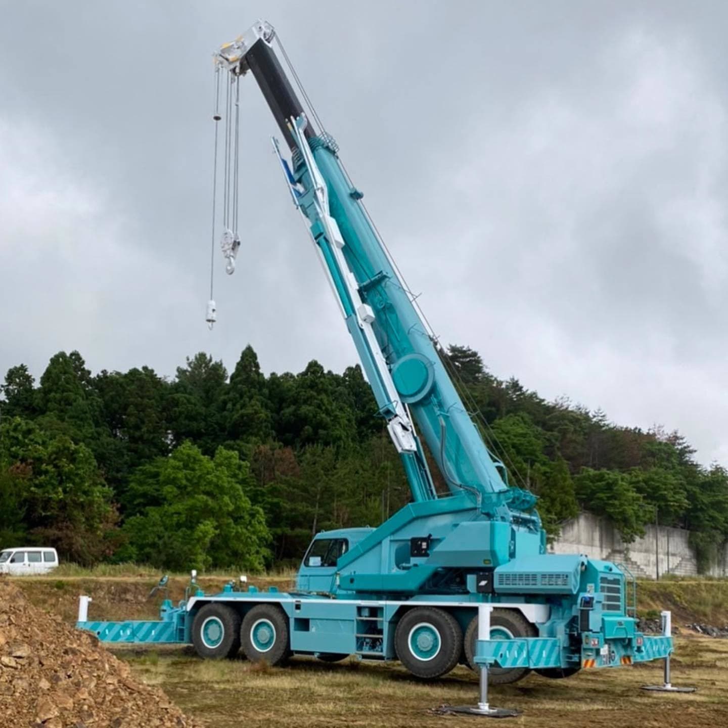 本日は130tオールテレーンクレーンに助けてもらいました。メインはバックホーの揚重だったのですが、午後からになったので撮れなかったようです^ ^TCLのロゴでよく見かける泰豊クレーンリースさんのKA-1300SLに来て頂いたようです^ ^ありがとうございます。